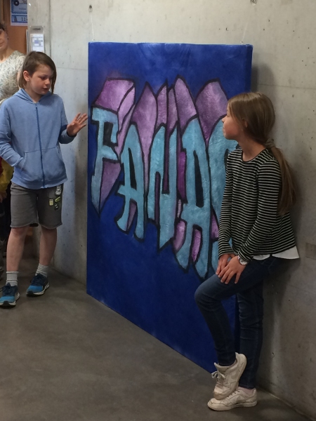 Am Freitag gingen wir in die Mühle in Grüsch Graffiti anschauen um 10:00 Uhr kamen die Eltern. Jede Gruppe musste sein Projekt vorstellen, das war toll. Danach assen wir alle zusammen Mittag. Es gab Hörnli mit Hackfleisch und zum Dessert eine Creme, es war sehr fein. Im Grossen und Ganzen war die Projektwoche sehr cool. ?